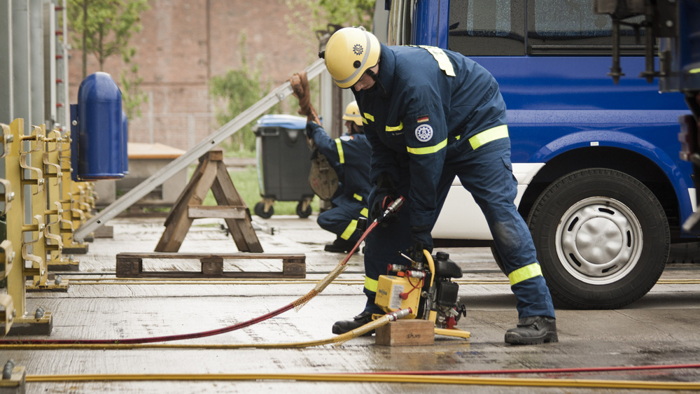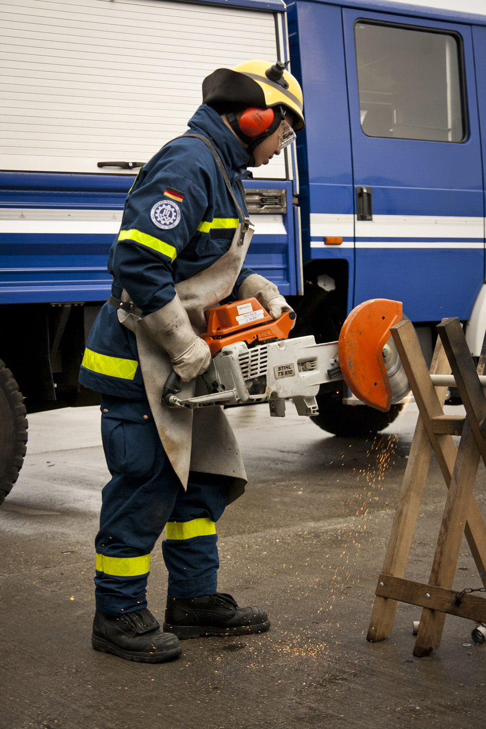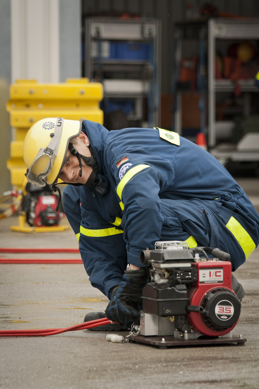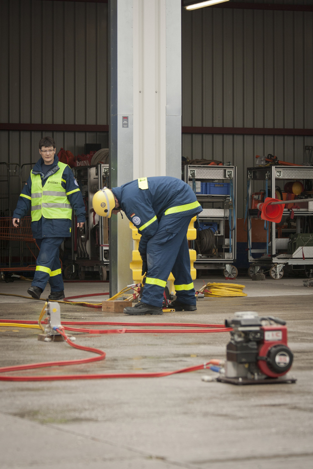 Ein Trennschleifer wird zerlegt und fachmännisch wieder zusammengebaut, ein Stativ mit Scheinwerfer aufgebaut, an einen Stromerzeuger angeschlossen und eine Person aus einem Tunnel gerettet. Nur ein kleiner Auszug aus den Aufgaben, die die Helferinnen und Helfer des Technischen Hilfswerks aus den Ortsverbänden Berlin-Mitte, Berlin Charlottenburg-Wilmersdorf, Berlin Friedrichshain-Kreuzberg, Berlin-Lichtenberg, Berlin Neukölln, Berlin Pankow und Berlin Reinickendorf bei ihrer Abschlussprüfung am Samstag im THW–Ortsverband Berlin Treptow-Köpenick bewältigen mussten.