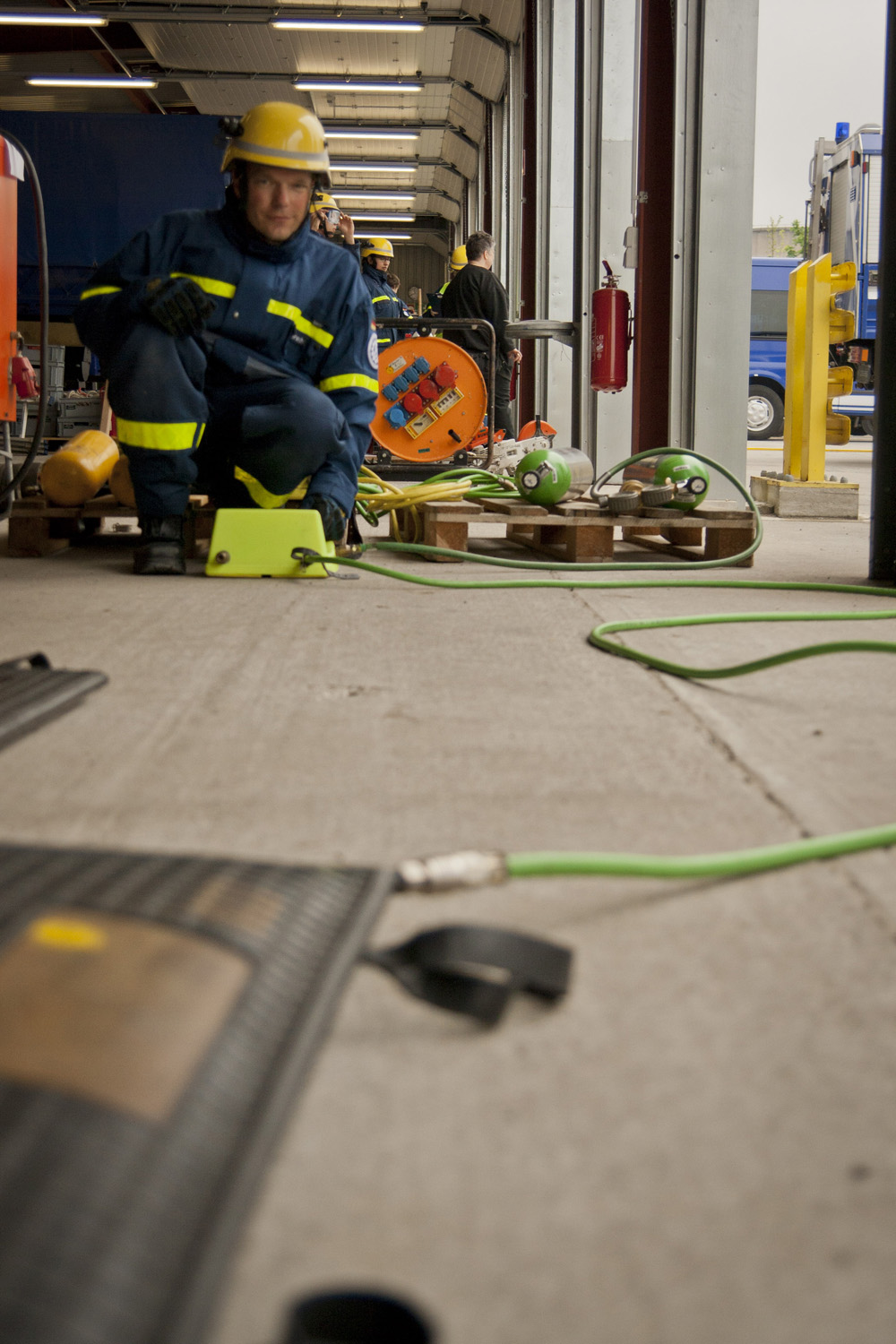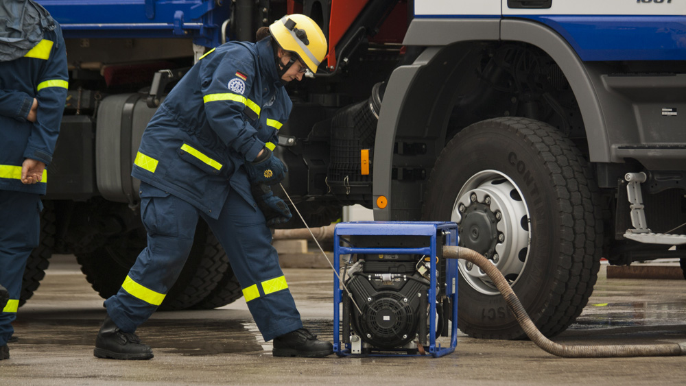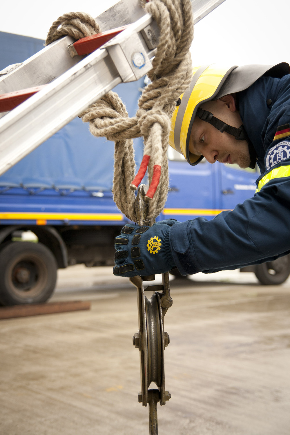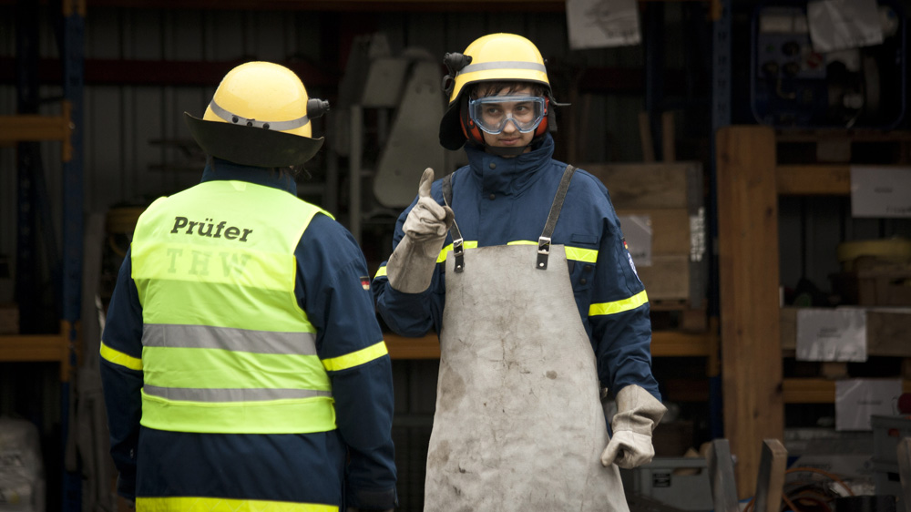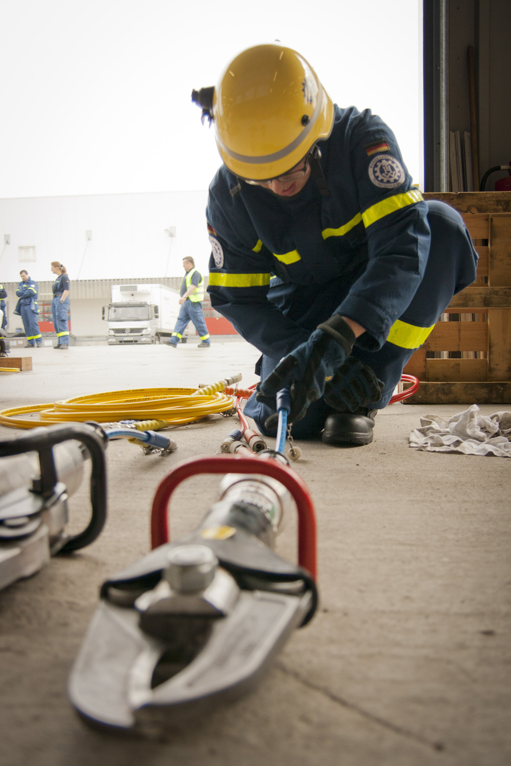 Ein Trennschleifer wird zerlegt und fachmännisch wieder zusammengebaut, ein Stativ mit Scheinwerfer aufgebaut, an einen Stromerzeuger angeschlossen und eine Person aus einem Tunnel gerettet. Nur ein kleiner Auszug aus den Aufgaben, die die Helferinnen und Helfer des Technischen Hilfswerks aus den Ortsverbänden Berlin-Mitte, Berlin Charlottenburg-Wilmersdorf, Berlin Friedrichshain-Kreuzberg, Berlin-Lichtenberg, Berlin Neukölln, Berlin Pankow und Berlin Reinickendorf bei ihrer Abschlussprüfung am Samstag im THW–Ortsverband Berlin Treptow-Köpenick bewältigen mussten.