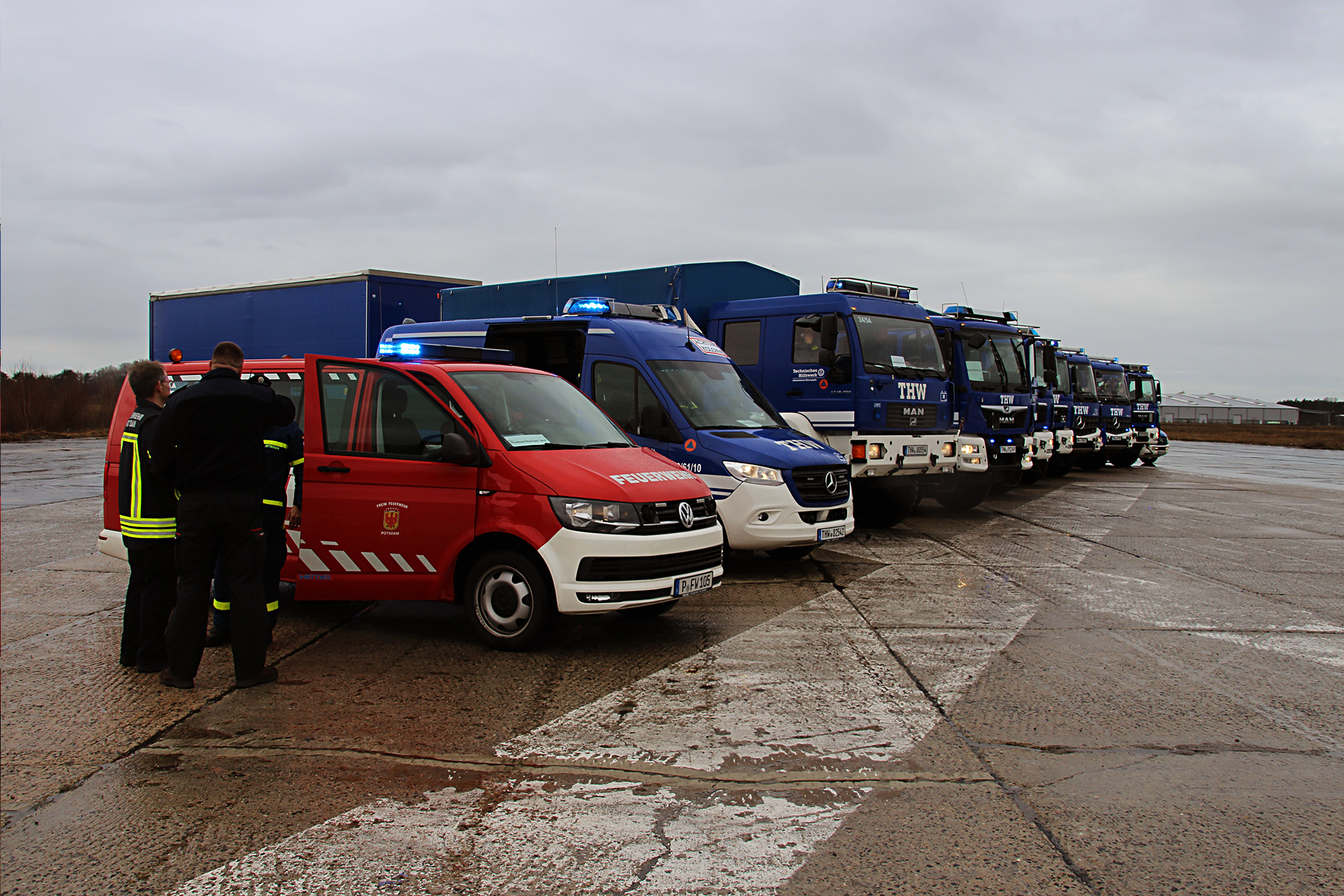 Aufstellung des Marschverbands vor der Abfahrt. THW / Pablo Grimm